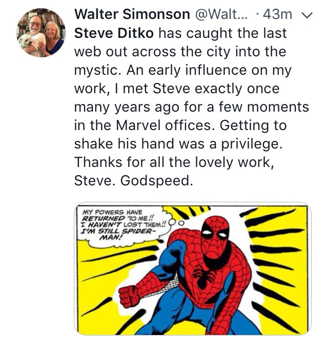 Tributes to Ditko and his influence on comics are flooding social media from creators and fans alike.