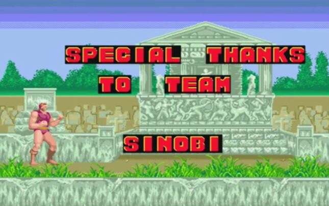 Back? Great. At the end of the credits, you may have seen a message that reads “Special thanks to Team Sinobi”. Who is that, you ask? Well, it’s Team Shinobi, as in one of SEGA’s old arcade development teams who developed the arcade version of Altered Beast and of course the original arcade version of Shinobi. Nice typo joke, right? Well, maybe it’s not so funny if you’re actually Team Shinobi, otherwise known as the butt of the joke.