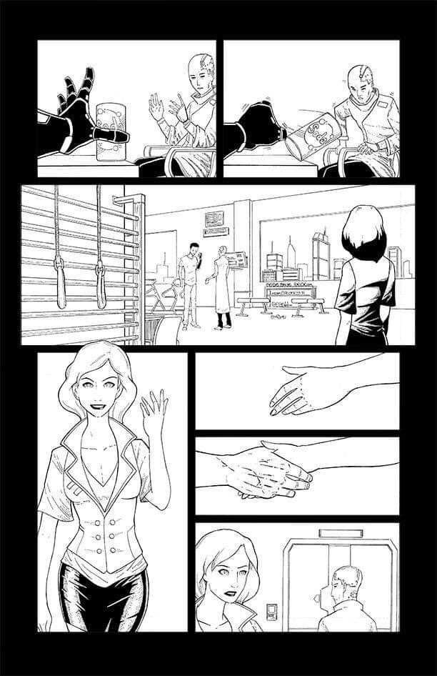 The Ferryman is a cyberpunk-inspired sci-fi/noir comic written by Sean Campbell and featuring illustrations by Dennis Tirona and colors by Ester Salguero. You can check out some of Tirona’s artwork from issue 2 of The Ferryman below.
