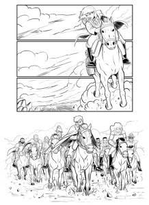 In issue #1 we follow the tale of a lone rider who is being hunted down. Her cargo is the key to her freedom and to her damnation. She blazes a trail across a foreign land and hopes that she will lose her pursuers in the crystal labyrinth known as the “Dragon Mouth Pass”. The ripple effect of this moment cascades into a chain of events that will echo throughout the lives of all in the realm, especially a teenage boy named Nito.