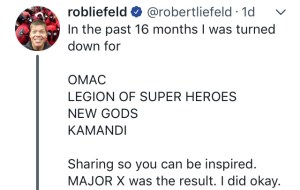 While it certainly appears that Liefeld meant for this post to be inspirational and not intended as a slam against DC Comics, it’s still clear that all of the series he listed are DC properties. In the back-and-forth that follows, Liefeld states that “agendas” are the reason why he was turned down for work on an additional DC series, Female Furies.