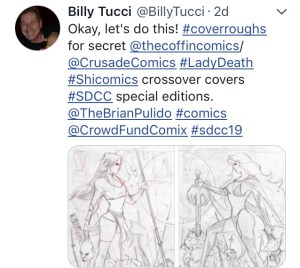 Shi creator Billy Tucci recently revealed that his is working on variant covers for special 25th anniversary editions of Shi #1 and Lady Death #1. In addition, the covers will feature interconnected artwork which will display as single image if displayed side-by-side.