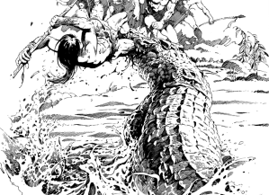 Independent comic book creator Lewis Michael (Chromosome 96) has been teasing an upcoming project scheduled to launch on Indiegogo this August. Simply titled Hunt, the book is a black and white trek through prehistory written by Michael, illustrated by Ang Hor Kheng, and presented in a perfect-bound, 8″ X 11″ format.