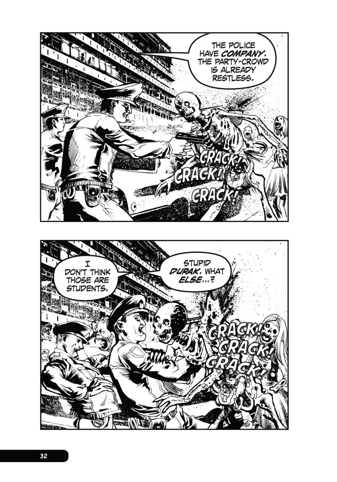 Written by Stefan Petrucha (X-Files, Captain America: Dark Designs) and illustrated by Javier Sanchez Aranda (Star Trek, Dungeons & Dragons), College of the Dead is girthy a 140-page book which follows a terrified student body as they deal not with a zombie horde, but with their manipulative university faculty, as well.