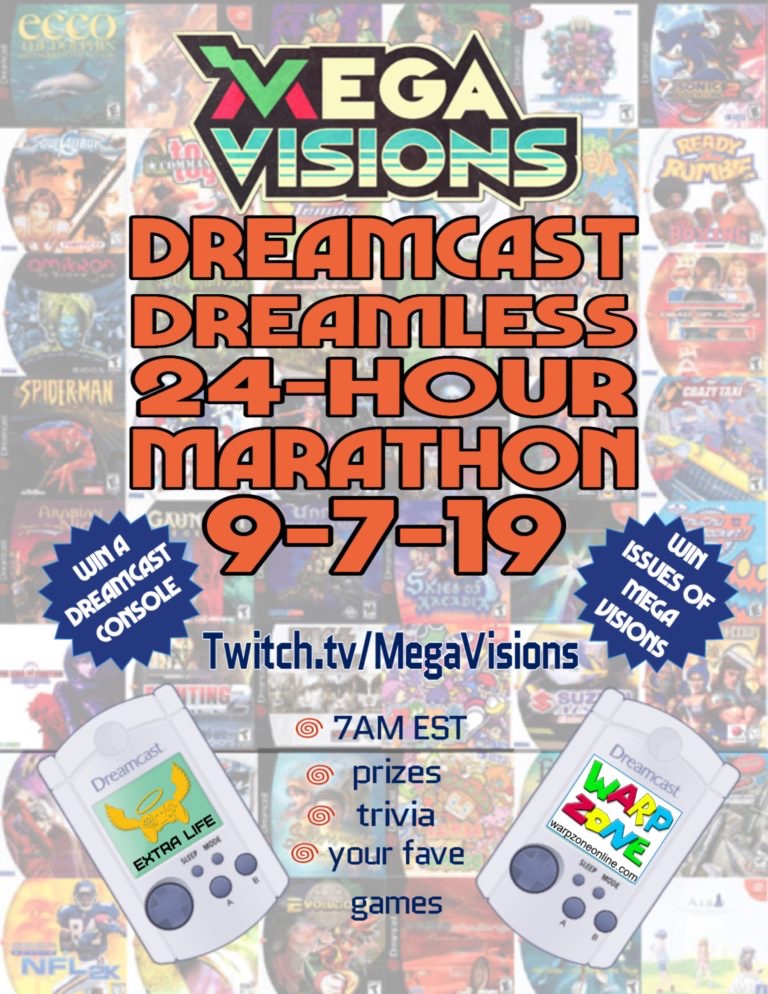 But why wait? Our friends over at Mega Visions Magazine (the only SEGA-themed print magazine out there) are hosting the annual Dreamcast Dreamless 24-hour Marathon starting tomorrow, 7 September on the Mega Visions Twitch channel. The Mega Visions team will be playing dozens of Dreamcast games, and you can help them support Extra Life (a charity supporting Children’s Miracle Network hospitals) at the same time. You can check out their full play schedule here.
