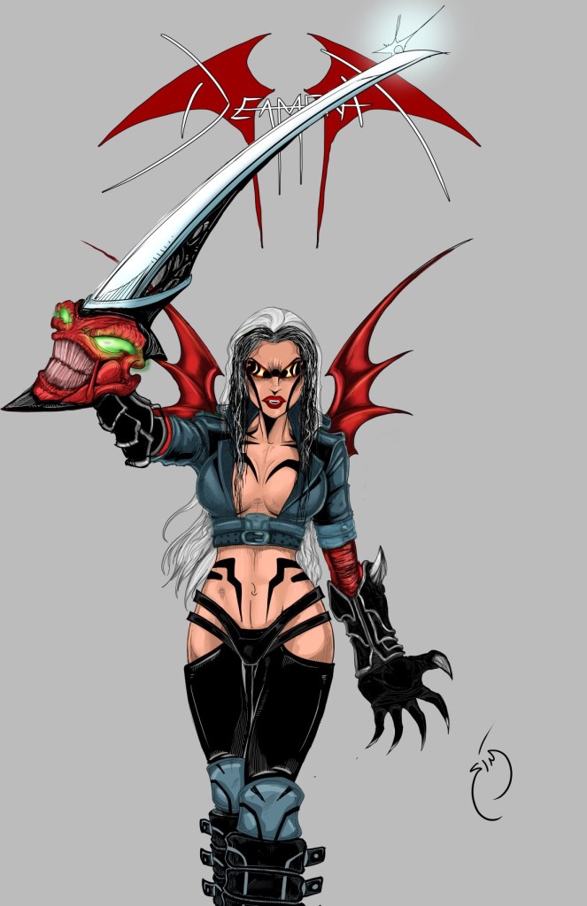BORN from tragedy & raised in HELL! She was brought up to be a warrior known as THE DRAGONESS. She fought & freed herself from slavery under the DEMON KING. Now, mistress of her own fate & MASTER HUNTRESS of the OCCULT, DEAMONA raises HELL protecting our world from mystical & otherworldly threats!