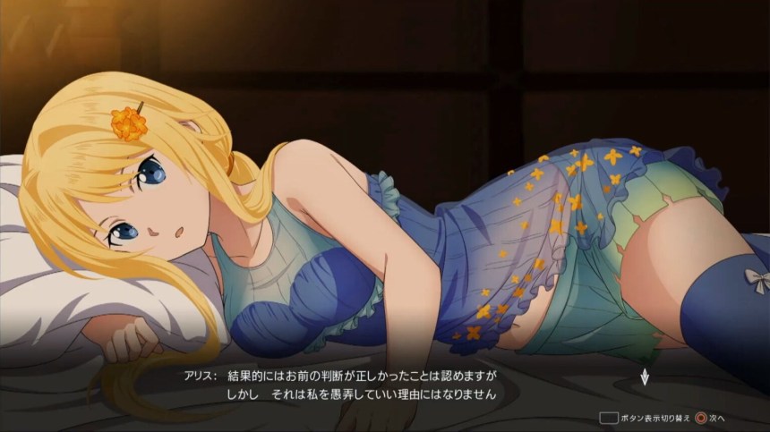Throughout the game, the main character Kirito has become quite popular with the ladies of Sword Art Online, and his personal relationships have historically been a part of the series. When you rack up enough points with one of the lovely ladies in Alicization Lycoris, you can unlock a scene where they will snuggle into bed with you for a “co-sleeping” chill session which is intended to increase your bonds with each character.