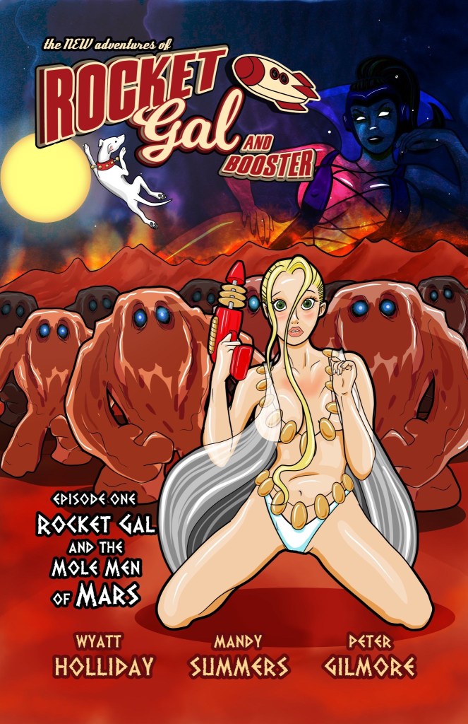 Rocket Gal! Accompanied by her faithful companion, Booster, Rocket Gal traverses the cosmos, finding herself involved in science fiction adventures with a retro/classic flair – the first of which pits her against the subterranean denizens of the red planet – the Mole Men of Mars!