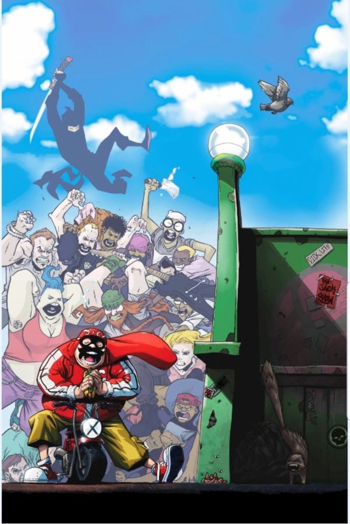 Perhaps the biggest bonus, however, is the additional ashcan-sized comic titled The Adventures of DirtWorm Dug, a parody of real-life events starring a spineless parasite named Dug who exploits the open arms of a successful society and nearly destroys it in the process.