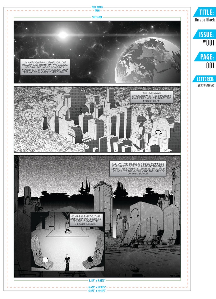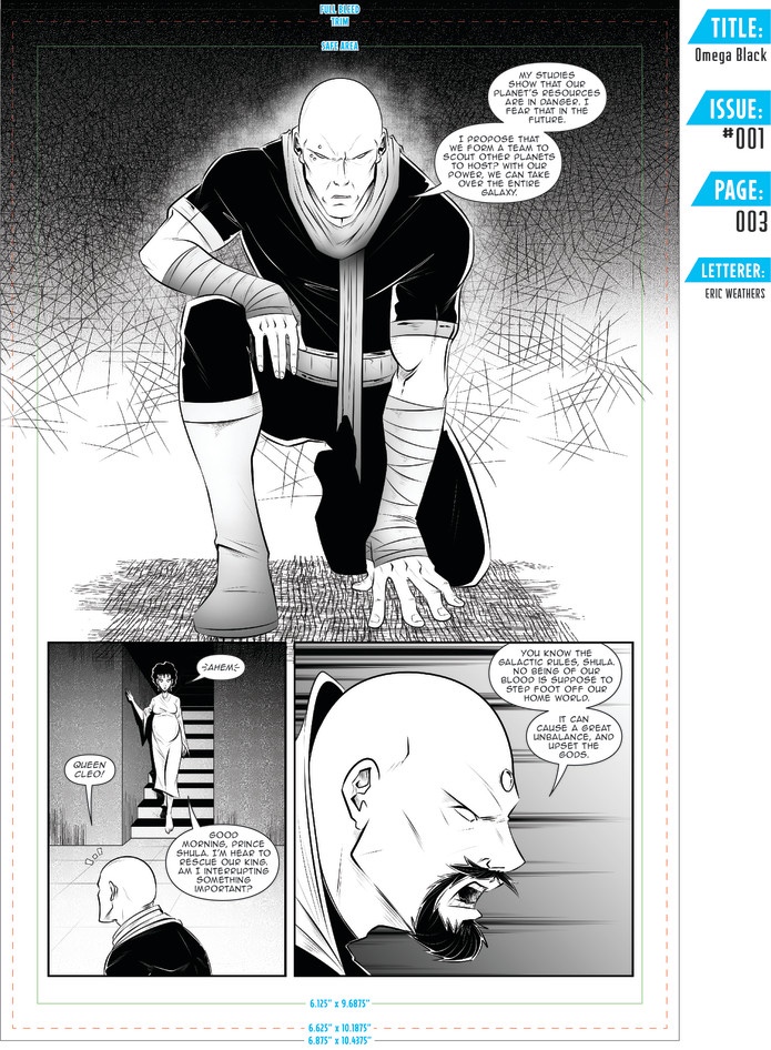 Independent publisher Fool’s Entertainment has launched a crowdfunding campaign for Omega Black, a 135-page, sci-fi manga book. Written by Chris L. Brown and featuring illustrations by Ed Jiménez and lettering by the ever-prolific Eric Weathers, Omega Black tells the story of the Royal Family of the planet Omega, and their connection to a mysterious power known as the Omega Stream.