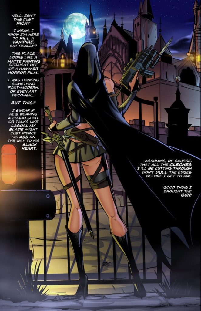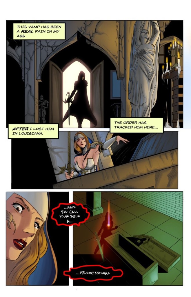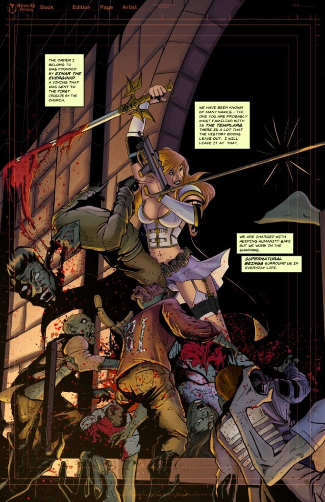 Mary, a member of the Templar Order is tasked with hunting the supernatural in order to keep humanity safe. After destroying a vampire, she is tasked with going undercover in a small town in Kentucky; this time to hunt an entire pack of werewolves. While she conducts her investigation and hunt, she finds herself surrounded by not only the evil of the supernatural, but the most evil creatures of all – Mankind itself. Will she accomplish her mission or will she fall under the spell of evil that seems to permeate humanity to it’s core? Find out in Mary Machinegun – issue one of three!