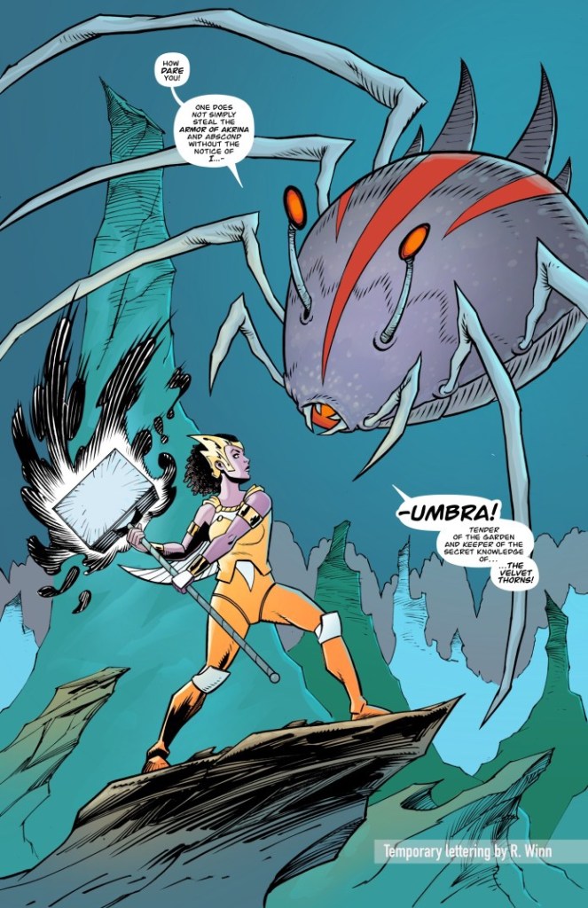 Written, illustrated and colored entirely by Winn, Hammerella is part of the larger Gods and Gears universe currently published by Alterna Comics. Here’s the official plot synopsis taken from the Hammerella Indiegogo campaign page:
