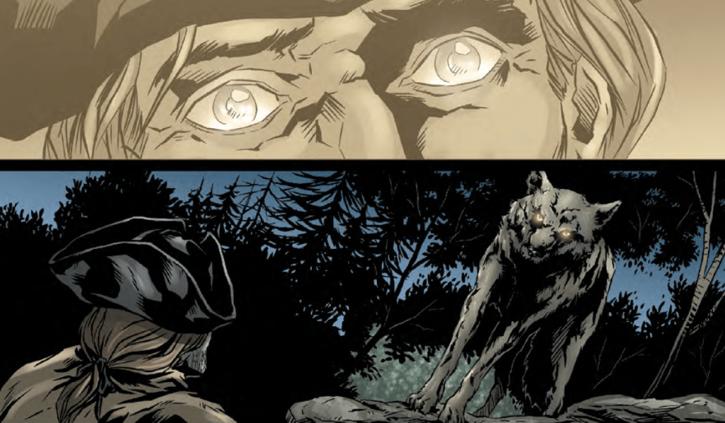 JM: For horror to work in a comic (or even a novel) it has to be somewhat psychological and less about jump-scares. I remember reading Arkham Asylum by Grant Morrison. It was disturbing and even gave my sister nightmares when she read it. Dave McKean’s illustrations were equally horrific. But War Party isn’t really horror, other than having werewolves and full moons. The transformations are somewhat horrific, as the pelt penetrates into and merges with the flesh of the wearer. And of course it is gory, but it’s mostly action and drama.