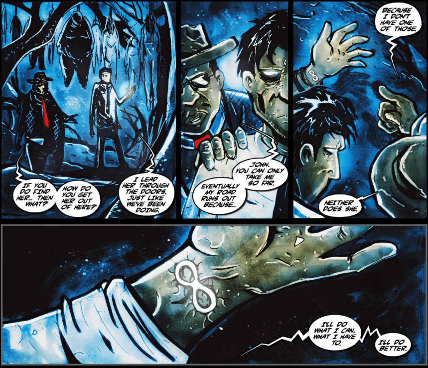 Without a doubt, Infinity is a very dark story, but it’s not completely hopeless. I found many of the major story beats were similar to the Robin Williams movie What Dreams May Come (based on the 1978 book by Richard Matheson), which similarly features a hero who journeys into an Inferno-inspired underworld to rescue the soul of his wife. Infinity also requires that the reader have a decent familiarity with Dante Alighieri’s original epic to really understand what is going on in the netherworld. If you haven’t been exposed to the original Inferno, don’t expect for Infinity to get you fully spun up. You can still follow the main narrative well enough, but much of the setting’s impact, both artistically and thematically, will be lost on you.