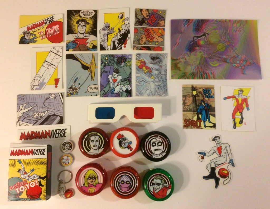 Welcome to a special Jolly Jinglings edition of crowdfunding reviews. Since nothing speaks to the spirit of the season like toys, today we’ll be reviewing Mike Allred’s Madman Action Yo-Yo’s Fun Pack! For those of you not familiar with the crowdfunding review format, we grade a crowdfunding campaign on four distinct categories: