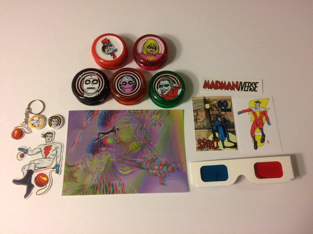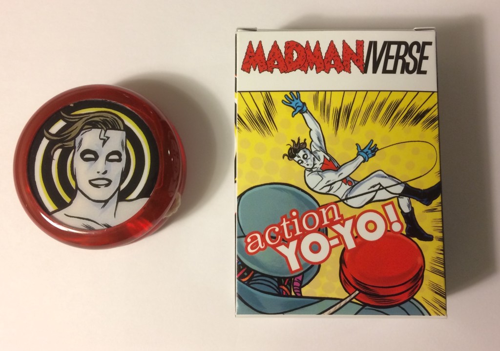 With Mike Allred’s Madman Action Yo-Yo’s Fun Pack I backed the basic tier that included one Madman Yo-Yo and a pack of nine trading cards. This campaign was exclusive to Kickstarter. So how fun was this “fun” pack?