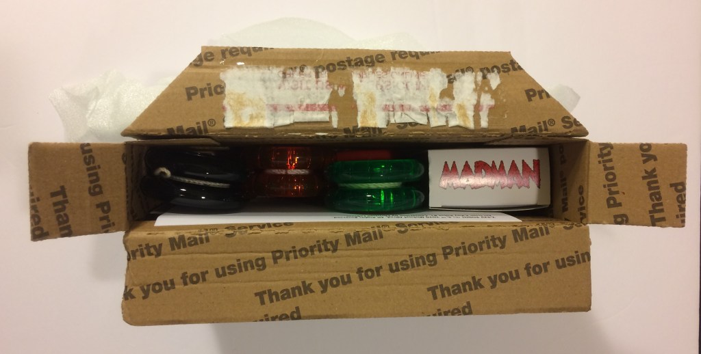 - Five bonus Yo-Yos. All bonus yo-yos were by Duncan ProYo (made of a lighter plastic than the featured item). They included: (1) ’90s Madman, (2) Oddity Odyssey Madman, (3) X-Ray Robot, (4) It Girl, and (5) Mr. Gum