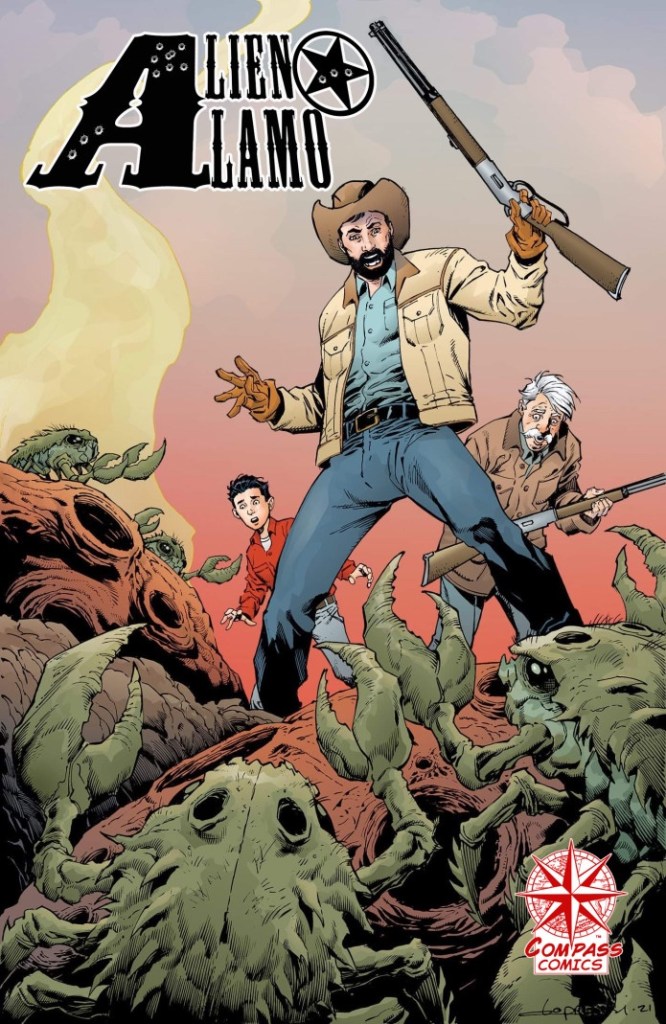 Written and illustrated by Nolan, Alien Alamo is a sci-fi adventure that exists in the larger Chenoo universe. Here’s the official plot synopsis taken from the Alien Alamo Indiegogo campaign page: