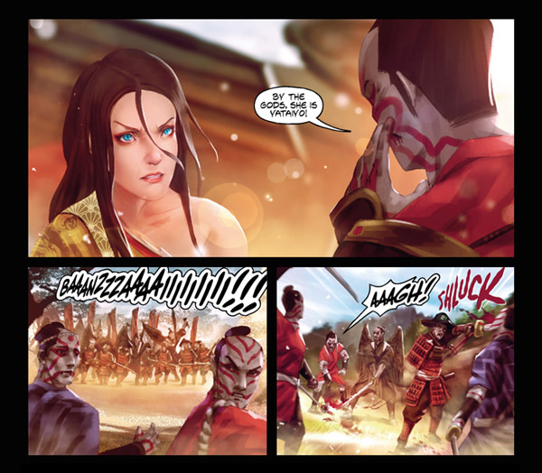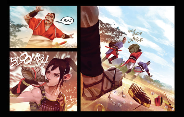 JA: Keita San actually reached out to me after coming across some preliminary art for the book, just to say it looked interesting. We talked back and forth about samurai for a while and then I decided to ask him to look at the script. I was definitely hesitant at letting him read the script at first, as obviously my western interpretation of Japanese mythology was bound to be surprising to him. But I thought it best to put my ego aside and seek his feedback in the interest of authenticity.