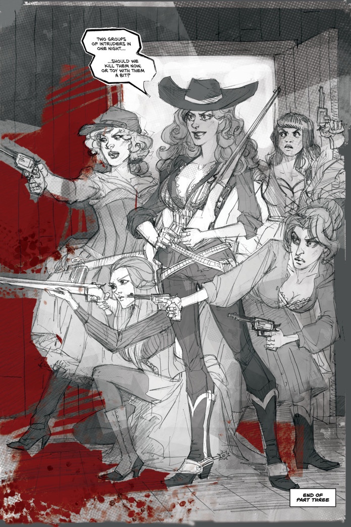Along the way, they meet some butt-kicking cowgirls… and, of course, zombies.