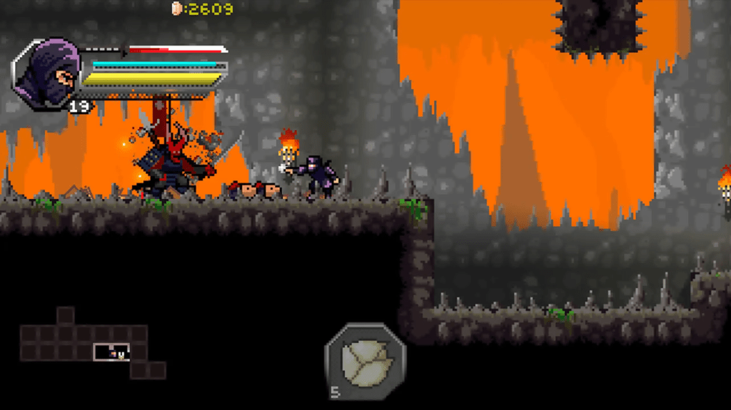 At its heart, Within the Blade is a side-scrolling action platformer with a visual flare reminiscent of those classic ninja games from the 80s and 90s. The story follows a ninja named Hideaki, a capable warrior sworn to protect his village from the evil Steel Claw clan led by Wamoru Imari.