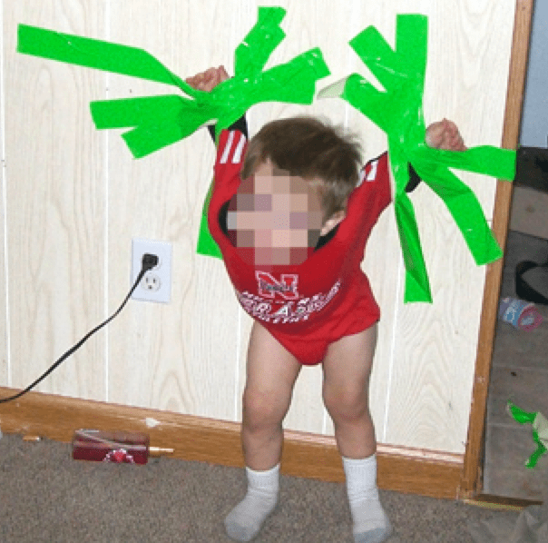Kaleb: It’s not funny! You taped me to that game all day and I pooped my pants! Twice! I want my dad! I want to go home!