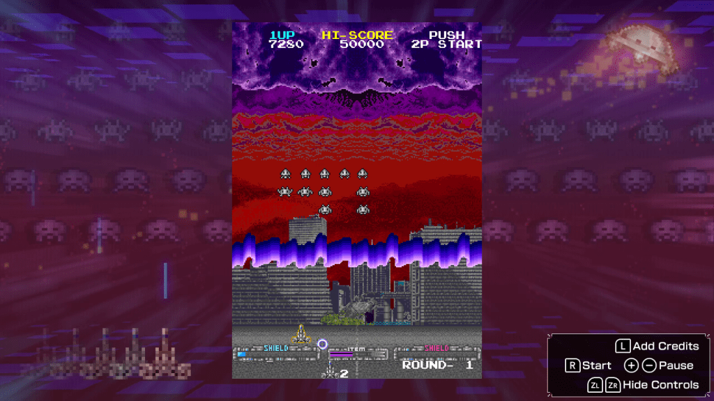 It’s important to note that the individual games have options for difficulty, shields, and ship stock, and you can always quick save your game if you’re in a pinch for time (or if you want to exploit the save states). As far as visual options go, you can turn on scan lines, select your screen size, or flip the screen longways to play in TATE mode, which works pretty well in the Switch’s handheld mode. There is also a “challenge mode” for each game, where you complete an objective with a specific set of rules rather than just play through the games.