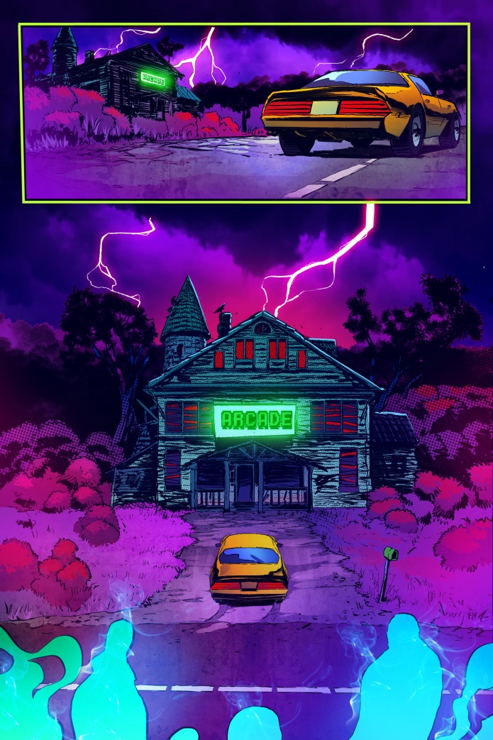 In the latest issue, Alex finds himself in a haunted arcade, forced to play a game called “The Gauntlet” for a chance to get back home to Kelly, the love of his life, or continue to hopelessly wander the endless Midnight Highway.