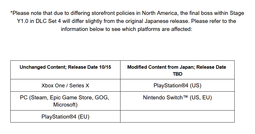 According to Censored Gaming, the final boss in stage Y 1.0 in DLC set 4 will be “modified”, almost certainly due to the creature having an appendage that resembles a massive cock phallus.