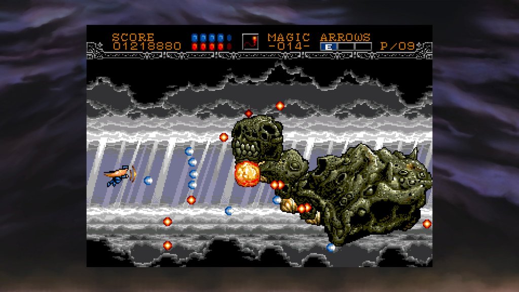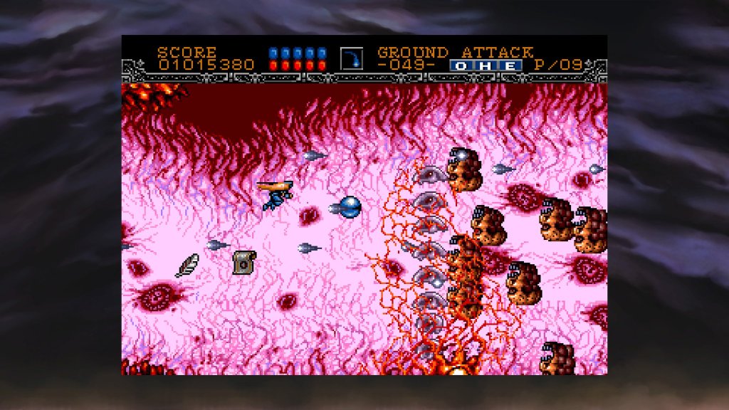Gynoug was originally an early 90s release, which was an era synonymous with challenging gameplay. In that company, Gynoug fits right in. It’s not a simple game, and taking a single hit means death. Some will find this challenge annoying, while others will say it adds replayability. Ratalaika has done their best to split the difference by adding save states and a rewind function, so there’s really no excuse for not seeing the game through to the end. Of course, there’s also multiple difficulty levels to select in the options screen, so there’s plenty of opportunity to tailor the experience to your liking. However, I should note that sometimes you can die by hitting the floor and ceiling, and sometimes you don’t. Either/or would be fine, but it should be consistent.