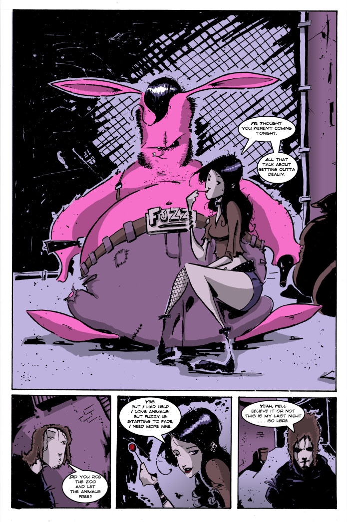 “Allow your mind to wander into a vibrant urban jungle, teeming with color and excitement, where unique and entrancing characters greet you on every corner, each with their own destiny and each with their own secrets. A young woman stands in the road, running her fingertips through a waterfall of blonde hair, she catches your eye. The stainless steel barrel of a gun glistens in the moist sunshine as it rests against her temple. She pulls the trigger. She is now infected with the drug, Crazy 9. Soon she will know her destiny.”