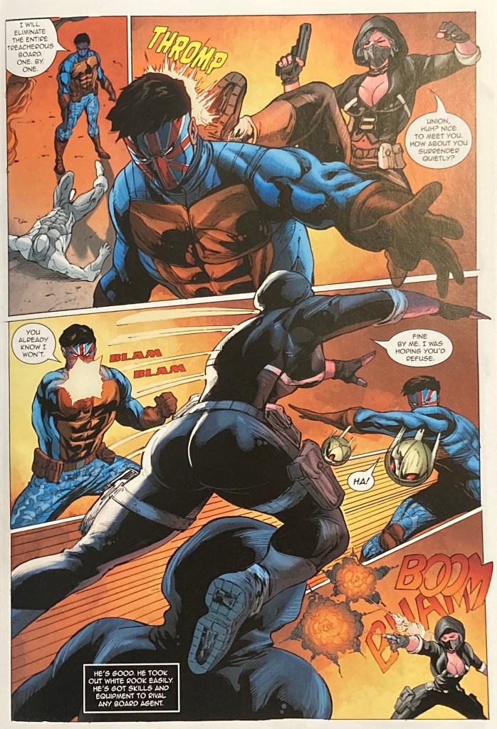 Despite her association with The Board being unceremoniously terminated, Agent Bishop chooses to clean up her mess and stop whomever is killing her fellow agents. Long story short, the assassin’s name is Union, and he’s got a very specific beef with The Board. The adventure takes Agent Bishop across the globe, where she confronts not only Union, but also tangles with China’s premiere superhero team – The Imperials, and more people die along the way.