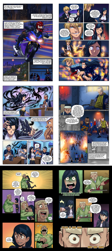 Shadow’s Daughter is a supernatural, post-apocalyptic comic set in a world beset by preternatural beings and natural disasters which coincide with the rising of the demon moon. The comic features a strong female lead who possesses the ability to manipulate shadow as a physical object.