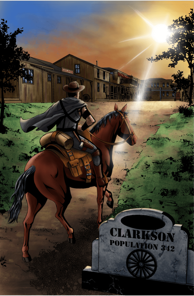 With this campaign, we bring you infamous gunslinger Desmond Gibbons, better known across the Wild West as The Cactus Kid. He comes to the sleepy town of Clarkson, not knowing the trouble he’d run into there, from the Sheriff to the evil druid to the transformation into the hulking four-armed Projectile Reptile! Join him on his journey of gun-slinging, druidic magic, super-heroes and artifacts.
