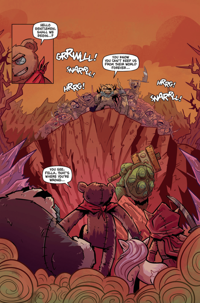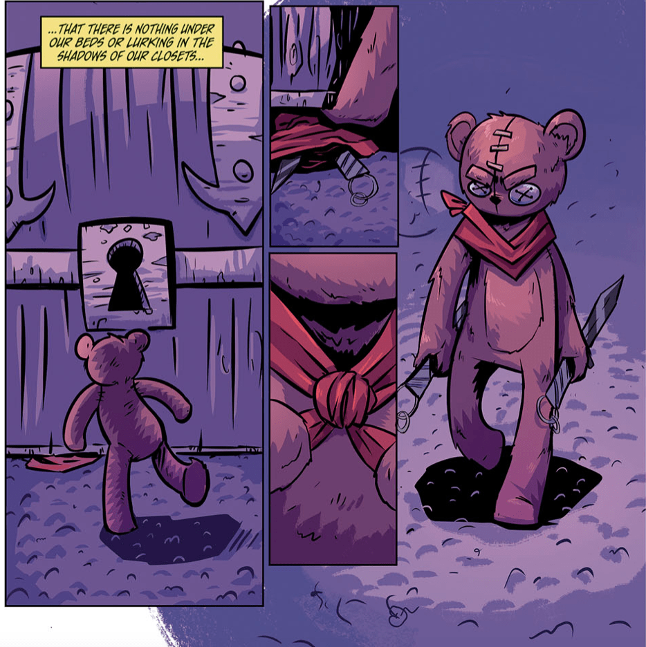 Written by Garrett Gunn and illustrated by Nicolas Touris, The Fear Diaries follows a small band of stuffed animals who defend their children from the nightly threat of vicious nightmares. To do so, they travel to some sort of alternate, desolate dimension, where the nightmares lay in wait.