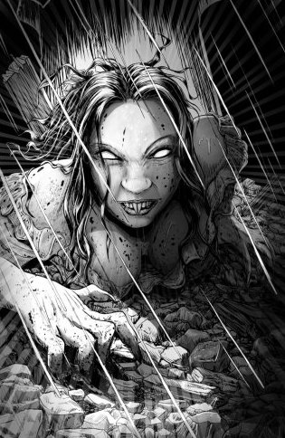 I’ve already mentioned my lack of satisfaction with Detective King’s portions of the story, but there are a few other lingering gripes that are worth mentioning. Sticking with James King, his thought narration was presented similar to a word balloon, which made keeping the two distinct a task. A light task, I admit, but one that shouldn’t have been there in the first place. I also found that the main vampire’s ability to resurrect anywhere he has a bone buried to be a bit too convenient of a device to keep the story going. If this is an understood element of vampire lore, I can dismiss it, but I’ve never heard of this from any other vampire stories.