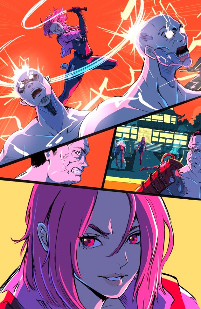Noguchi Michio. Ronin turned bounty hunter, killing targets for the coin as he struggles to regain his footing and discover his path. Then there’s Nyx. Fast, fierce, and efficient. Her infectious charm belies the storm beneath the surface.