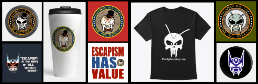 The Splintering’s TeesPublic store has items for all budgets, great and small! If you like what we do & want to help keep our site 100% free of paid ads, go here!