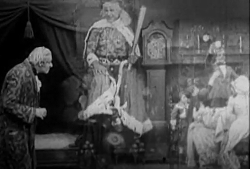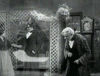 Aside from the performances, this version of A Christmas Carol has some impressive special effects for 1910. The ghosts and visions are presented using double exposure, resulting in a haunting transparency effect. The sets are tight and there are no significant camera movements, but the sets themselves are well-constructed and adequately frame the Dickensian world. The costumes all fit the era well enough, too, though the Ghosts of Past, Present and Future may not match more modern visualizations of them. The Ghost of Christmas Future looks more like a sorcerer than he does the Grim Reaper, for instance.