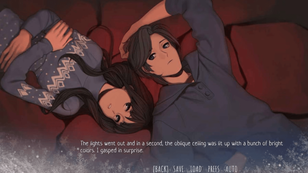 Overall, Big Dipper is a very flawed, minimally interactive experience, even for a visual novel. However, the most critical part of the experience, the plot itself, was actually pretty good, though. If you’re ever stuck at home on New Year’s Eve without a date, Big Dipper is a fairly cute and endearing romantic story and it may be worth a few bucks and your 2-3 hours to give it go, even if it really is only good for the one playthrough.
