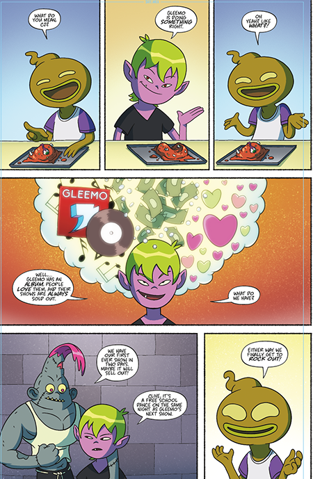 Written by Davy T. Otterby and illustrations by Jake Kazakos (Rick and Morty), colors by Josh Perez (Transformers) and lettering by the prolific Eric Weathers (Battle Brick Road), Unemployed Monsters is the all-ages story of “Three friends just want to make music and have fun.”