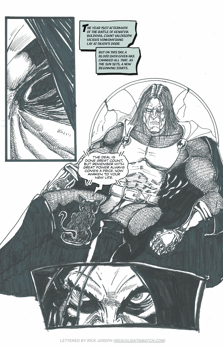 The Year 1507. The Battle of Kenatvia has taken place. On the brink of Death, Count Valdisoph Vicious Vonkomfoang lies dying. He made a Holy Blood Oath to his brother, The Great Prince VonStine, to always protect and defend the country and family. Now, as the Great Prince lies dead and the Count close to death. Time has stopped, and a deal has been made.