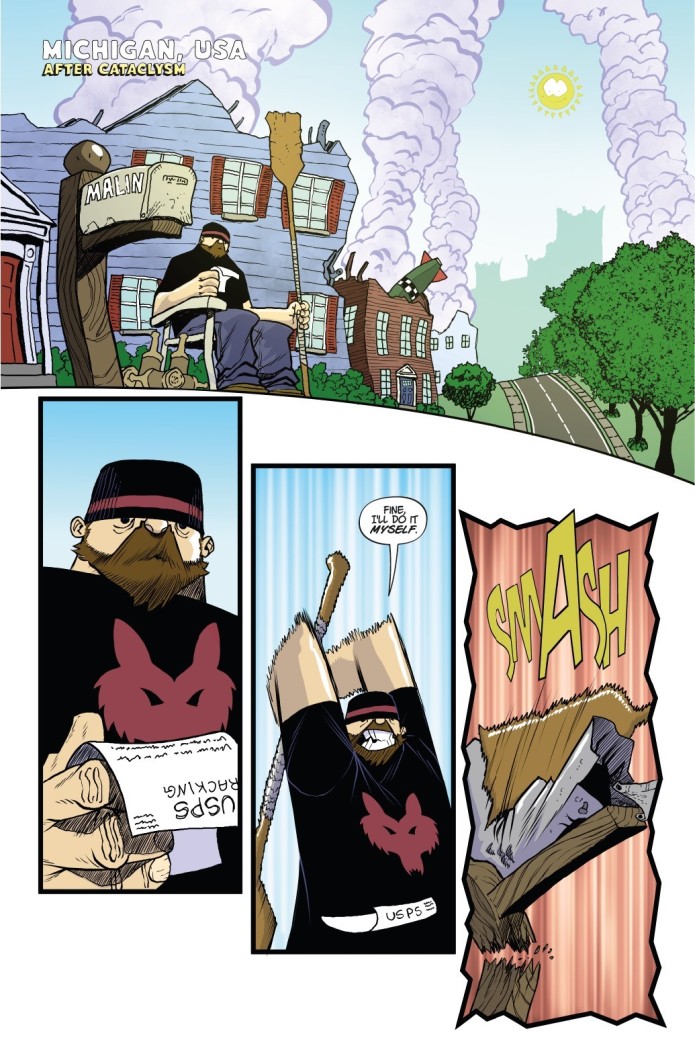Join us as we follow our determined hero Jawn Mai-Lin as he rampages through the post apocalyptic landscapes of Michigan looking for his lost in the mail Dale Keown comic book cover!