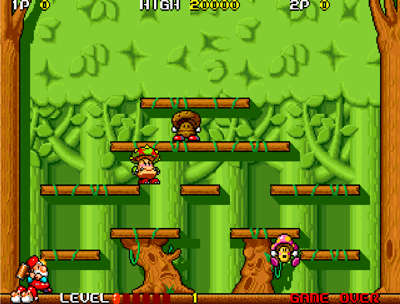 One or two players take control of a pair of lumberjacks named Bob and Jim on a mission to rescue the King and his daughter (the Princess). The heroic woodsmen must overcome a series of fixed-screen stages, defeating enemies, collecting power-ups, and overcoming the massive boss battles at the end of each round.