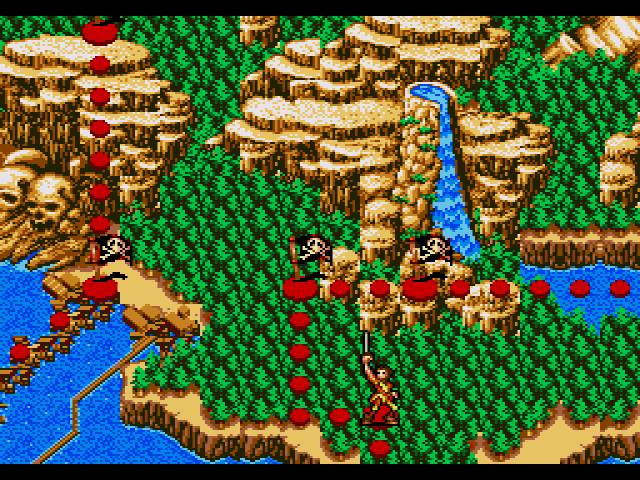 A light “twing” of a bow and arrow being fired? Not there. The sound of a boulder or barrel being thrown at you, Congo Bongo style? Missing. How about even a simple “Yargh!” being muttered when you slash an enemy pirate? Absent. As much as I really do hate pirate speak, it wasn’t nearly as prevalent and annoying in 1992, and how much better (and doable) would it have been to have the pirates taunt you a bit while you are fighting them?