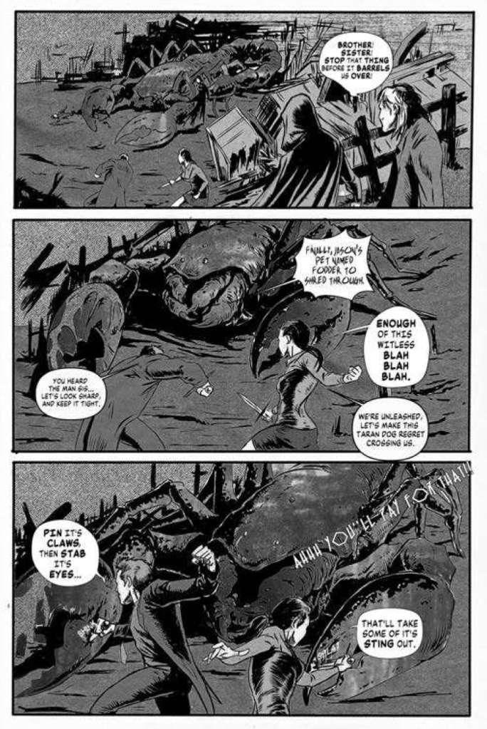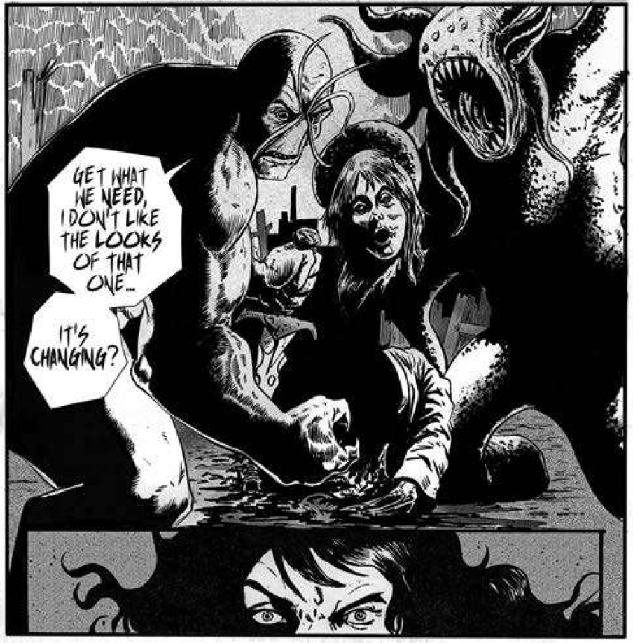 The art, despite being produced by different artists, does evoke a gritty, old-school horror feel, and swapping between art styles from one story to the next isn’t jarring. However, I often had trouble trying to piece together what was happening in some of the individual panels. I had to work far too hard to differentiate the characters and the actions they were performing, and there really are a lot of characters – both human and monster – that you will have to keep up with.