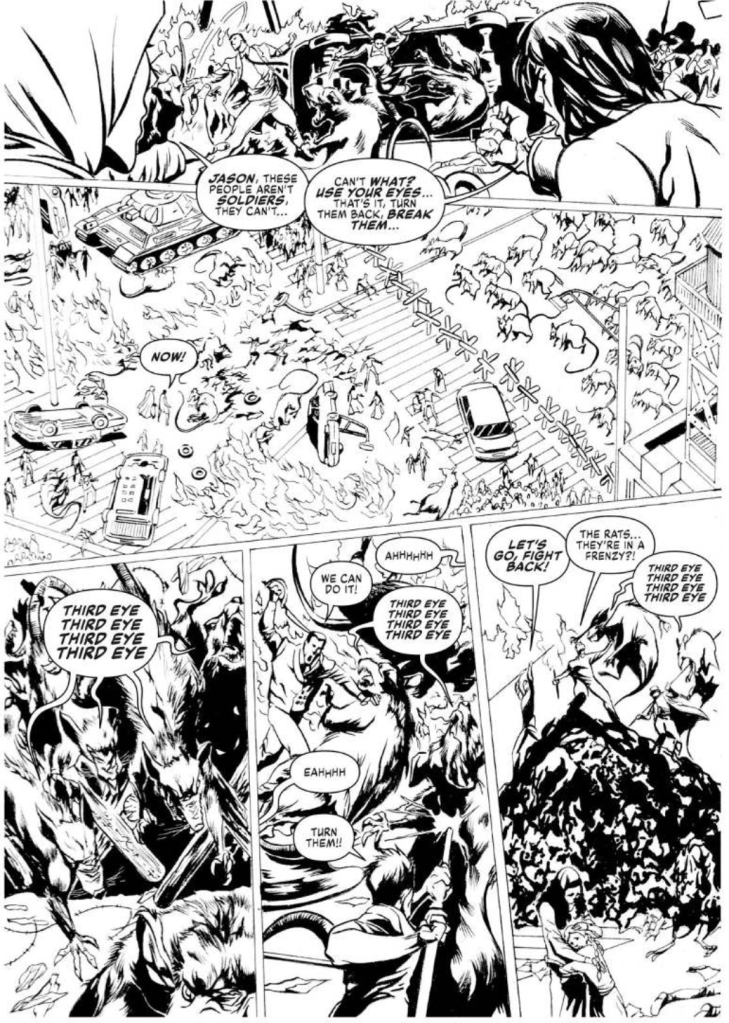 What does appear to be the priority plot line is the villagers that are fighting for survival. At first, they are trying to eliminate giant rat-like creatures that have taken over, then a giant lava monster, and then some humanoid monsters arrive in the third issue. There is no explanation of where these creatures come from, mind you, they simply appear and kill most of the villagers in visually violent ways. It is crazy, bizarre and confusing. It reminds me of a Dungeons and Dragons campaign where the Dungeon Master is just creating the most bizarre scenarios that the party must overcome. With a role of the dice, in comes an… um…. Demogorgon!