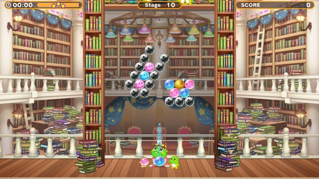 Sound-wise, the game music in Puzzle Bobble Everybubble is mostly upbeat and poppy tunes that largely match the tone of each stage. The voices can be kind of jarring… particularly the librarian. Ugh! It doesn’t help that each stage starts with an announcement from the level’s main resident! Hearing that cursed librarian say “Ready… GO!” in her raspy, little-kid sounding voice each time I had to restart a stage… Annoying is putting it lightly! Irritating, perturbing, irksome, even! And of course, this is about the part in the game where the stages started to get really difficult, so I had to restart quite a few times on some stages, and hear that same, piercing hiss…
