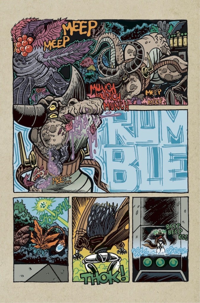 There was quite the revelation at the end of issue #2 concerning the Hunter and his robot companions, and while they may be warriors capable of taking on some of the biggest and meanest creatures ever seen, it turns out that this alien planet has a few surprises even the Hunter can’t handle!