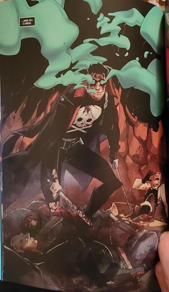 Klaus was still very creative with the way he scripted things for the page turns- high marks for that. One beautiful pinup page has a single text box that reads, “A time when killing”; and after the page turn… ”… was all I knew” coupled with yet another stunning full-pager. There were a lot of splash pages like this inserted throughout, and it was a solid way to spotlight the art.